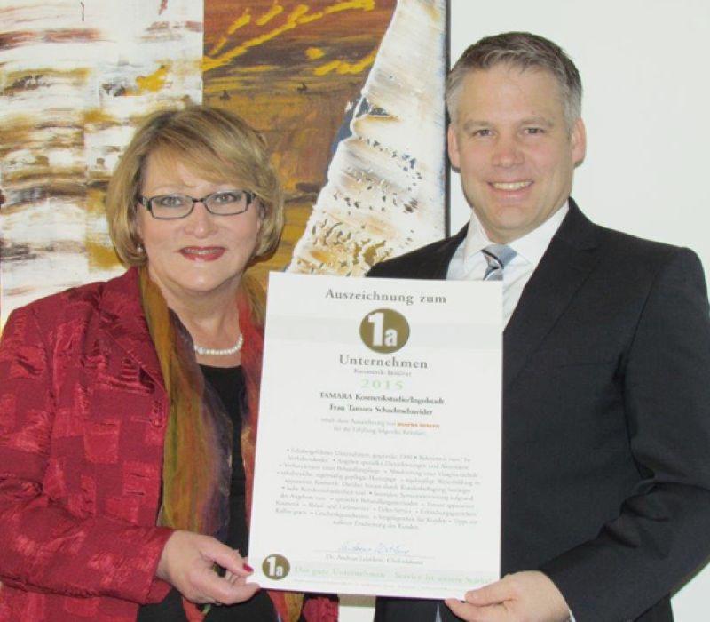Bereits zum fünften Mal durfte unser seit 1990 bestehendes Institut, Tamara Kosmetikstudio, die Urkunde zum 1a-Unternehmen entgegen nehmen. Oberbürgermeister Dr. Christian Lösel übergab uns die Auszeichnung bei stilvollen Feierlichkeiten.